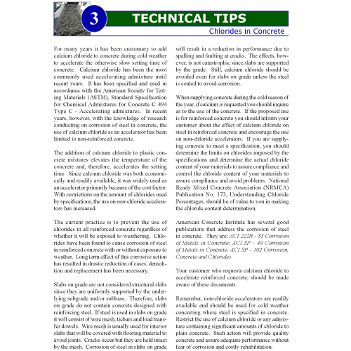 May 13, 2015 Chlorides in Concrete $1.25 Chlorides in Concrete quantity Add To cart SKU: 1016-3 Category: Literature Related products Guidelines for Durable Driveways, Carports, Patios, Walks, Garage Floors $1.20 Add to cart Concrete Technician Manual $85.00 Add to cart Technical Tips $1.25 – $10.00Price range: $1.25 through $10.00 Add to cart A Homeowner’s Guide to Healthy Concrete $1.35 Add to cart
