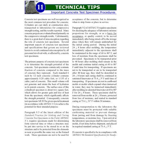 May 13, 2015 Important Concrete Test Specimen Procedures $1.25 Important Concrete Test Specimen Procedures quantity Add To cart SKU: 1016-11 Category: Literature Related products Cement Burn Awareness Brochure $1.00 Add to cart Concrete Technician Manual $85.00 Add to cart A Homeowner’s Guide to Healthy Concrete $1.35 Add to cart ACI Concrete Field Testing Technician Grade 1 Workbook $105.00 Add to cart
