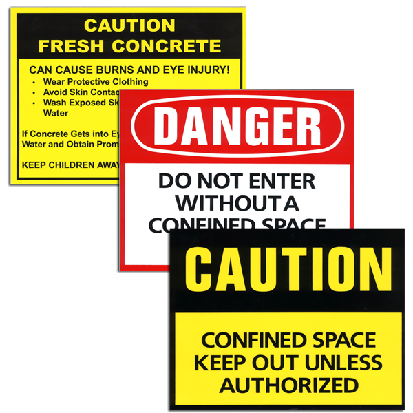 Ohio Concrete’s Safety Truck Decals These brightly colored truck decals warn customers and employees of hazards associated with confined space and fresh concrete. The decals measure 8.5 x 11″ and they are durable and self adhesive making them easy to apply. Choose from the following: Caution Confined Space – The most common confined space in your business is the mixer drum on your trucks. This decal boldly identifies this area as a confined space. Caution Fresh Concrete – This decal warns of the potential dangers of fresh concrete. Including burns and eye injuries. Every ready mix truck should display this sticker in a highly visible area. Danger Confined Space Permit – OSHA demands that all confined spaces which require a permit to be obtained before entry be visibly marked. This decal informs employees, customers, contractors, etc., about the importance of confined space permits.